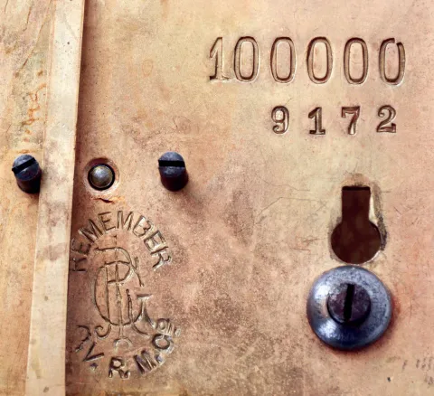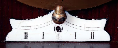 top of case replaced, door with minor spotting at lower right, bracket with replacements, dial with hairlines, ticks, 36h x 15w