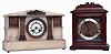 (1) Mahogany case in original finish with some dings and scratches to the finish. Original dial with a silvered chapter ring is very nice with original hands. Movement is signed. (2) Onyx case has some roughness on the base corners and the right side top edge. Original porcelain dial has hairline cracks in the center dial. Original hands.