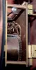 French clock case dirty, and with split at bottom, cast ornament good, ticking, Ht 26", German clock with repairs to top of case, drops replaced, ticks and strikes, Ht 36"