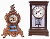 Clocks- 2 (Two): (1) Waterbury Clock Co., Waterbury, Conn., "Seine", 8 days, time and strike, spring driven brass movement mantel clock c1905. (2) French, 8 days, time and strike, spring driven brass movement crystal regulator shelf clock, c1900.