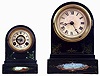 Clocks- 2 (Two): (1) Terry Clock Co., Waterbury, Conn., small iron case clock with a spring driven, 30 hours, time and alarm movement, c1870. (2) Terry Clock Co., Waterbury, Conn., larger iron case clock with a spring driven, 8 days, time and strike
