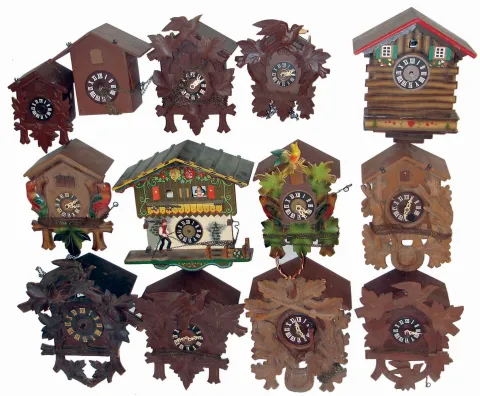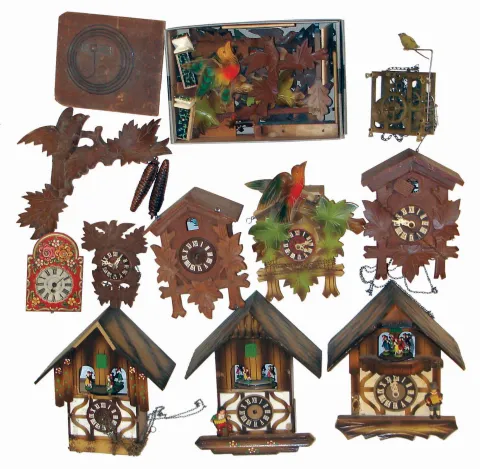 Cuckoo Clocks- 21 (Twenty-one) German weight driven hanging clocks, plus additional related material, 20th century