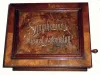the right comb is missing 2 teeth and the box plays well. At one time the box was changed from coin-op and there is a filled slot in the case front and the start stop lever is now on the inside of the box. The titles of the two discs are "Dixie" and "Stars and Stripes". For information on Symphonion, please see Bower's "Encyclopedia of Automatic Musical Instruments, page 218- 220. Width 20 1/4"