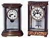 Clocks- 2 (Two): (1) French, Marti & Cie, 8 days, time and strike, spring driven brass movement crystal regulator mantel clock. (2) Waterbury Clock Co., Waterbury, Conn., "Aubert", 8 days, time and strike, spring driven brass movement crystal regulator mantel clock. Oval brass case in need of a polishing. Unusual case in that it has top that lifts up to gain access to the interior screws or maybe to hide valuables. Original porcelain dial has a small chip on the edge at 9 o'clock. Original hands. All the beveled glass panels are fine. Replaced pendulum. (2) Brass case with some gilding remaining on the embossed top and bottom. Original porcelain dial has hairline scratches. Original hands and pendulum. The front and right side beveled glass panel is chipped. The other two glass panels are fine. Movement is signed.
