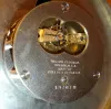 Polished brass case with a screw on bezel has a small ding on the edge and scratch marks on the back edge screw holes. Original silvered dial is pretty good for its age with a couple scratches and lightly soiled areas. Original hands. Lever movement is nickel plated. These pre-WWII timepieces were originally sold in nickel-plated cases and during the war offered in Phenolic cases. This example over time must have lost its nickel plating and is now polished brass. Ht 7 1/2"