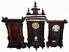 many useful parts and perhaps enough for complete clocks, but sold as is with no further details available. Ht of 3-weight is 45"