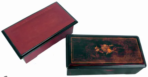 Swiss Music Boxes- 2 (Two) in painted and inlaid wood boxes, c1900