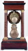 France, portico clock, rosewood veneered case with contrasting stringing and floral inlays, columns with gilt capitals and bases, top and base with ribbed, ebonized quarter round molding, gilt bezel and pendulum with leaf and scroll design, Roman numeral