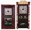 Clocks- 2 (Two) American: (1) Chauncey Jerome, 8 days, time and strike, weight driven brass movement OOG shelf clock, c1850; (2) Birge, Peck & Co., 8 days, time and strike, weight driven brass movement triple decker shelf clock, c1849.