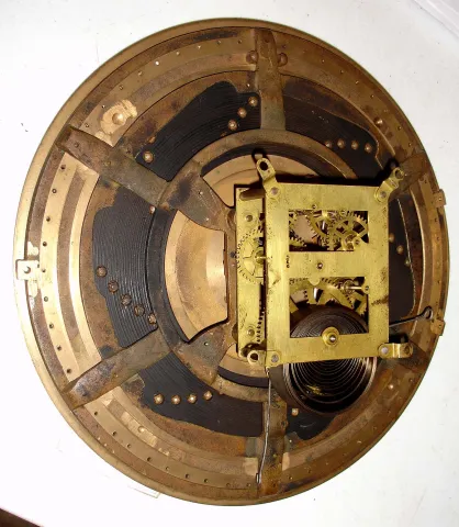 we do not find this unique heavy clock in any catalogues, but it appears to provide signaling and/or recording functions. The dial has an outer ring o...