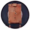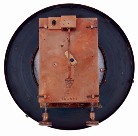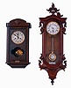 the R-A has been professionally restored and is excellent running condition. Top left leaf is absent; height, tip to tip 34" The box clock is similarly clean and running, height 22"