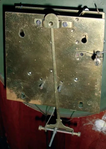 finishes are old, 2 of 3 top crests are absent, one pendulum and one small rosette is missing, one front glass is loose, the one crest needs a better dowel post, some finials are damaged, there are some age splits and dial hairlines. Two movements are signed on backplates. Sold as is, no further details available. Hts 51", 39" and 41"