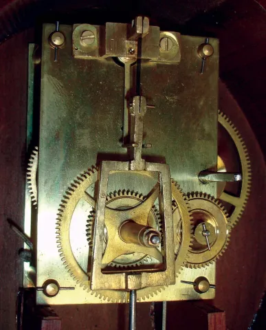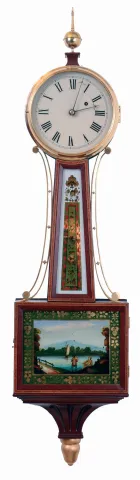 Unknown, modern copy of an 8 days, weight driven brass movement patent or banjo timepiece.