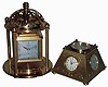 Clocks- 2 (Two) Angelus with weather stations, lacquered brass and beveled glass, 8 days, 15 jewel with thermometer, barometer and hygrometer, one with top compass; mid 20th century both are in very good original condition, and both movements tick and set but were not tested long term, nor were the other instruments tested. Sold as is. Ht of tallest is 8"