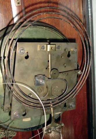 all three are in good original condition with old finishes and brass weight pairs. One is missing its top crest; one has no bezel around its damaged dial; one has a loose bottom bracket. All three have the Becker stamp on movement backplates. Sold as is, no further details available. Hts 46", 40" and 47"