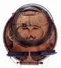 Austria, 3-weight Grand Sonnerie wall clock, 8 days duration, in a longer, 72-beat/min case, with a cast bezel, c1850, with restorations. the top trim of the case was recently made by a good cabinet maker to match the style and color of the clock; it has some open grain, but is pretty good. All 6 finials are newly turned. The movement is a high quality bench made movement, on its original repaired seat board. Seat board broke at some point and has been reinforced, and needs additional attention. One thumb nut on the beat-set has been replaced. Hands are original. Pendulum bob has some small dents. Overall a good looking clock that will respond to some TLC. Ht 57"