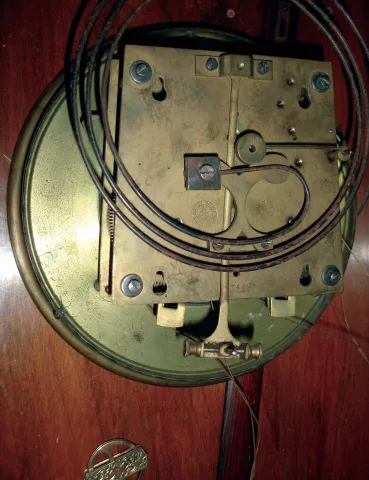 all three are mostly complete and original condition with old surfaces and top crests, but some with loose joints and age splits. One has badly flaked dial and missing hands and weights, one missing seconds hand. Sold as is, no further details available. .Hts 47", 47" and 49"