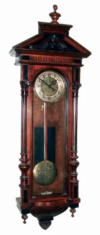 Clocks- 2 (Two) German walnut 3 weight, 8 days, Vienna regulator wall clocks, one serpentine, one Gustav Becker, c1890