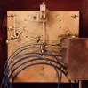 case in an old finish, cleaned, mounts polished, top center finial replaced, needs a little extra stain to match, dial with minor discoloration, hands with minor oxide, ticks and strikes, movement will need adjustment, as hours sometimes sound with quarters, A large and impressive clock. 26"h x 13"w