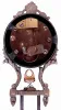figure retains original patina with minor losses, left pinky finger missing, base with minor dents, clock retains original green finish with minor losses, nickel plating with minor wear, ticking, suspension springs with minor distortion, will need service and adjustment in order to run reliably. Ht 12"