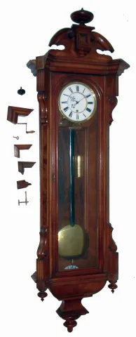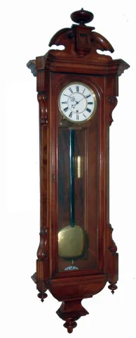 German walnut long duration, single weight, time only Vienna regulator wall clock, c1880