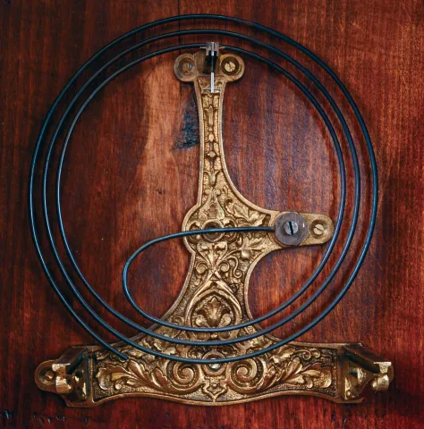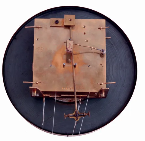 the front carved door is old, but the sides and back of the case appear to be recent, solidly made, stained to match the door. There is an old case ha...