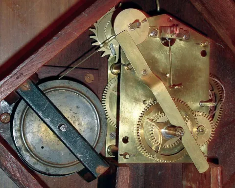 Diamond head wall clocks were designed by Daniel Monroe, Jr. This case shows enough age to make it difficult to determine when this timepiece was actu...