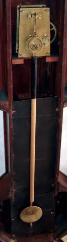 the clock retains excellent original grain painted surface. The bottom of the case was knocked out, but repaired. There are repairs on lower door usin...