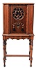 Music & Sound Producing Items- (3) and accessories: (1) Sparks, Whittington Co., Jackson, MI. "Jewel" Model 400 small size floor standing radio in Mahogany case; (2) Reproduction of the original Edison Reproducer; (3) Small portable Edison phonograph machine serial #137420 including approximately fifty 5.5in records and three additional reproducers radio in good condition and fancy decoration intact. Tubes seem intact, but very dirty. Not tested if working. Measurements provided.