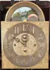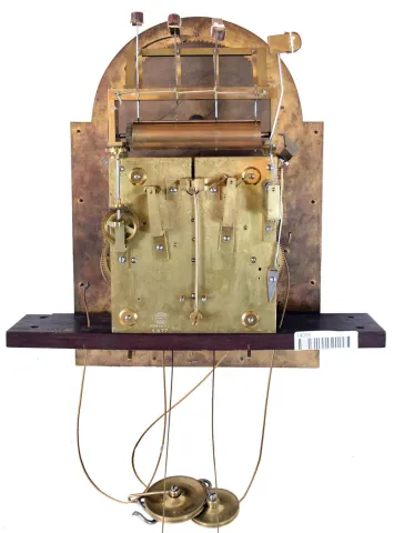 the case retains its original finish. The feet and lower moldings on base are present but not attached and the tube hangers will need to be restrung. The silvered chapter ring is tarnished. Two of the hammers need to be refastened. The repair label indicates service by Philip D'avanza in January of 2012. This clock will present very well with a few minor repairs.