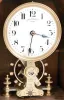 Eureka Clock Co. Ltd., London, England, battery powered mantel clock with oversized balance wheel movement in an inlayed mahogany case with beveled glasses and cream porcelain dial, s#9078 Inlayed mahogany case in original finish with minor wear at the front knob that is now missing. Original porcelain dial is perfect. Original hands.