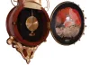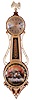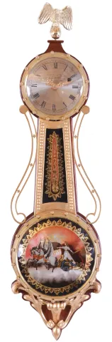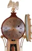 C. E. Beacham, Sisters, OR, 8 days, weight brass movement miniature girandole timepiece. Beacham's clock shop is still in business doing clock repair and producing handcrafted clocks. Mahogany and gilt case in excellent original condition. Beautifully done tablets by Tom Moberg. The bottom door is not wood like the full size original, but brass. The top door is brass. Beautifully made brass movement. Silvered brass dial is perfect.