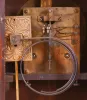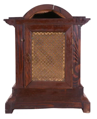 the case retains its original finish nicely rubbed down with a split in the arch top and the front door does not catch properly. The dial is lightly t...
