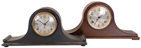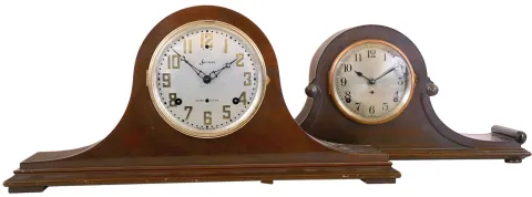 Clocks- 4 (Four) Tambour mantel mahogany 8 day time and strike: two by Sessions (both with 2-train Westminster chime movements ; two by Seth Thomas; early 20th century