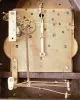 the chime clock has a detached No. 113 movement with missing components, and there are loose parts in the case. The ornate dial is very nice; the original case finish is worn. The R/A movement is unsigned, and its bottom finial and a side molding are absent. Otherwise, its condition is very good, with nice white enamel on the dial and pendulum bob. Ht of R/A is 33 in, chime clock is 15 in