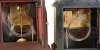 (1) Refinished mahogany and inlayed mahogany veneered case in nice condition. Original porcelain dial is perfect. Original hands and pendulum. Ht 12.5" (2) Ebonized mahogany case in original finish with some dings and scratches. Repainted metal dial could be a replacement has the winding and center holes are a little large. Period hands. Ht13.5"