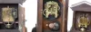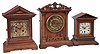 all three ornate architectural wood cases are in good condition, with some minor scratches and age splits. The metal dials have old patinas. The signed movements appear complete but were not tested, and all are sold as is. Hts 15 in, 11.5 in and 16 in