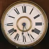 Clocks- 2 (Two): (1) Ansonia Clock Co., New York, NY,"Queen Elizabeth", 8 day, time and strike spring brass movement wall clock. c1885. (2) Seth Thomas Clock Co., Thomaston, Conn., "Globe" wall hanging clock with a spring driven 8 day timepiece movement