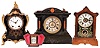 Clocks- 4 (Four): Philip Haas & Sohne German 30 hour time and alarm grain painted cottage clock; Seth Thomas black enamel wood 8 day time and strike mantel; Waterbury "Speck" 30 hour time only carriage clock with carrying case; and Seth Thomas black