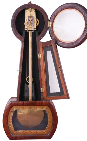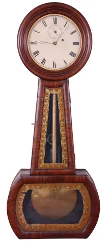 American, New England (size and style of a Howard "No. 1") banjo wall timepiece regulator, probably Boston area or New Hampshire (possibly from one of the Willard shops or by one of their apprentices): The 8 day weight driven precision movement has an