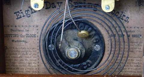 Clocks- 3 (Three): (1) Seth Thomas, Plymouth Hollow, Conn., 8 days, time and strike spring brass movement cottage clock. c1862 (2) Seth Thomas Clock Co., Thomaston, Conn., 8 days, time and strike spring brass movement cottage clock. c1880 (3) Seth Thomas