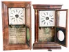 Clocks- 3 (Three): E. N. Welch Mfg. Co. Forestville, Conn., 30 hour, time and strike weight brass movement OOG shelf clock. c1875 (2) Waterbury Clock Co., Waterbury, Conn., "Column", 30 hour, time and strike weight brass movement column & cornice shelf