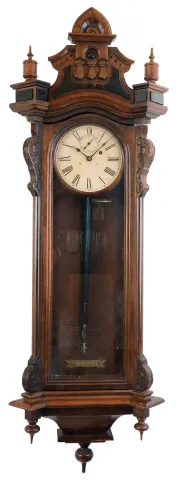 Clocks- 4 (Four) reproduction spring driven wall clocks including two German style Vienna regulators, an American mosaic model and a banjo