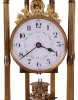 Gustav Becker, Germany Louvre style 400 day anniversary clock, spring driven torsion pendulum movement in a polished brass case under dome. his large anniversary clock, with disc pendulum and Becker trademark, is in very nice original condition with some slight tarnish of the brass base The porcelain dial, with flowered garlands, is excellent. The torsion spring suspension block needs to be reattached but is present and the movement appears complete otherwise.