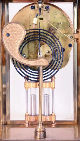 Clocks- 2 (Two) Ansonia crystal regulators, brass and glass 8 day time and strike mantel clocks with visible escapements: "Marquis" with missing top cast pieces; and "Prism
