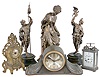 Clocks- 3 (Three) and Cast Figurines- 3 (Three) ; (1) Sangamo Electric Co., Springfield, IL, Style 5051electrically wound clock in heavy cast metal tambour case, serial no. 491 Type B, c1927; cast metal novelty 30 hour time and alarm; (2) William L.