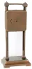 (1) the metal case appears to have some new paint, with some scratches The signed silvered dial has some scratches, too; the minute hand is detached and the seconds hand is absent. There is no ticking, and the hand setting knob is absent, so service will be needed, and the standing racks appear a bit bent. (Caution: The racks are spelter and easily broken.) (2) the doll is a replacement. Ht 14.5in