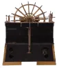 dirty and with tarnish, the original marble or slate base replaced with the current wooden base, the original clockwork movement used to drive the paddle wheel replaced by the current electric motor and gearing, bronze mounts added, paddle wheel with some replaced paddles, original metal finishes with losses, silvered dials darkened, clock hands painted white, clock running, electric motor not tested