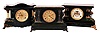 (1) Enameled wood case is very clean with a couple dings on the top front edge. Paper dial has minor stains and is otherwise very clean and maybe original. Original hands. Ht 11" (2) Adamantine case is very clean with some damage at the top left corner and a small chip to the right corner. Original paper dial is stained. Original hands. This model is similar to the Shasta with a different style top. Ht 12" (3) Enameled wood case in as found condition with stains from storage in damp environment Original embossed metal dial is tarnished. Original hands.