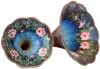All tin horns have paint loss or other imperfections. The two decorated ones are attractive even with their imperfections. Some of the black ones may be made presentable with cleaning and waxing, but some will need repainting One black horn is missing its narrow end section and one has a break near the nipple end.